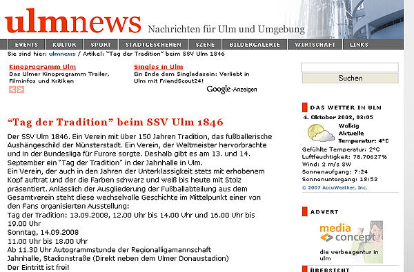 die Ulmer Fußballgeschichte. |