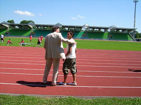 Armin Birzele begrüßt "Zaungast" Bagceci |