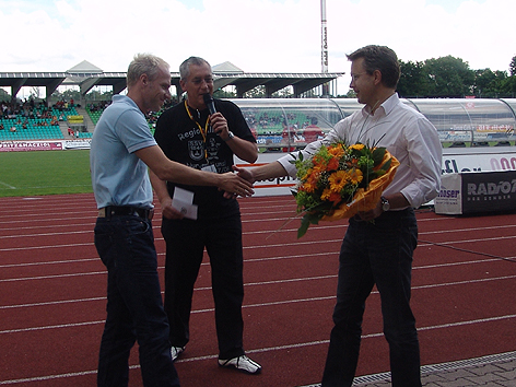angesagt. Stadionsprecher Hans-Peter Behm führte zusammen