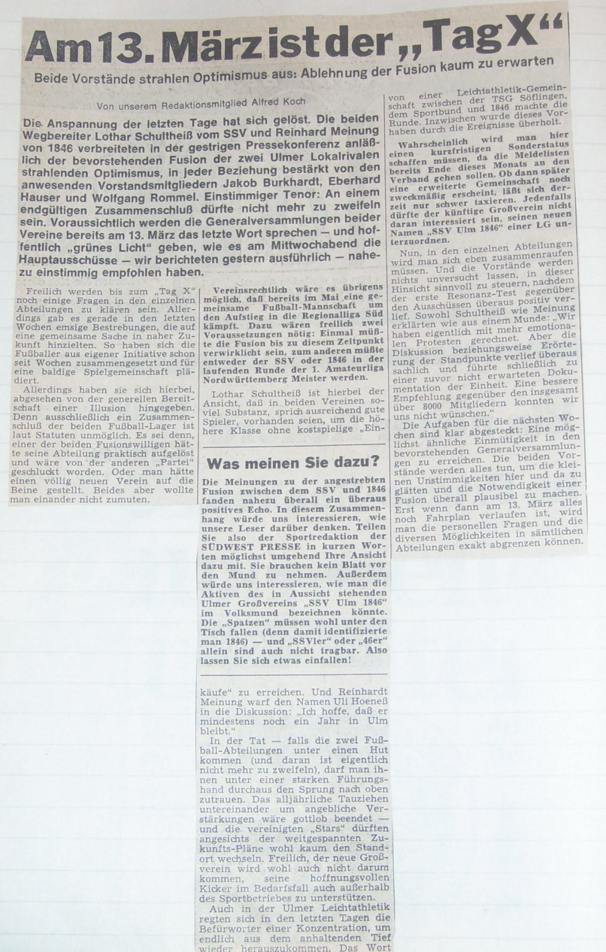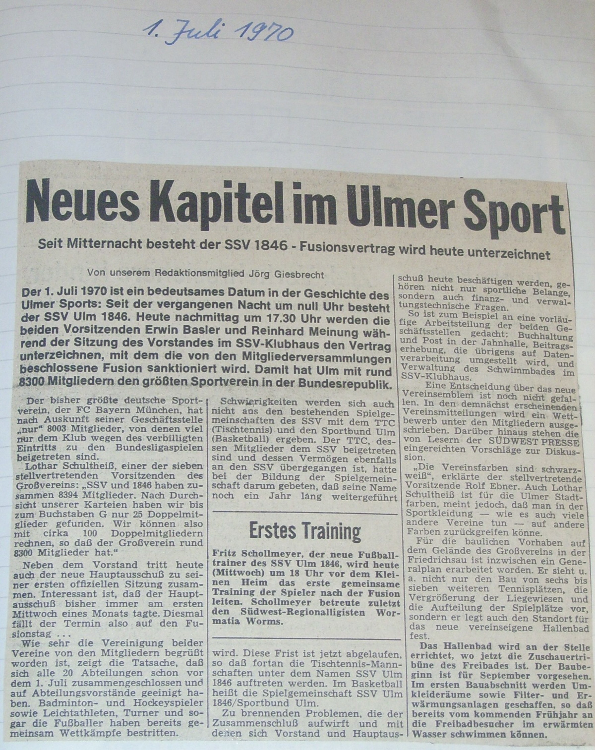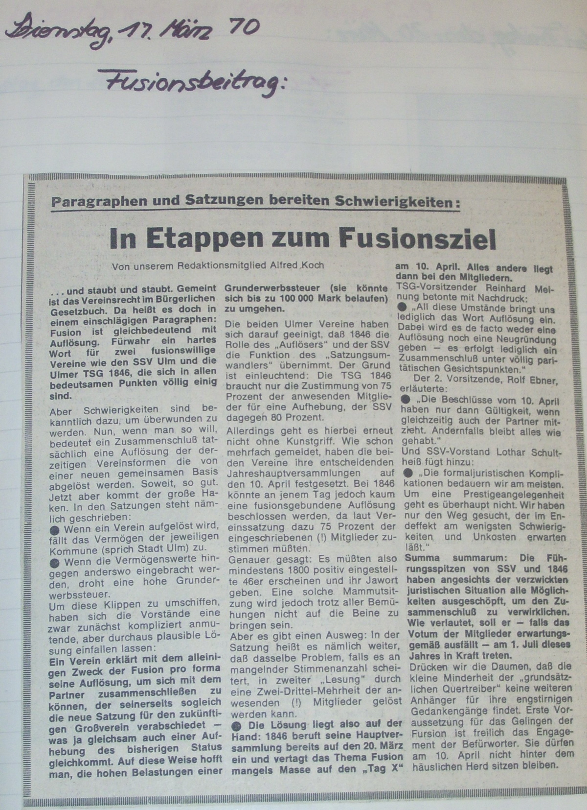 spannenden Zeit unseres daraus resultierenden Verein SSV Ulm 1846.