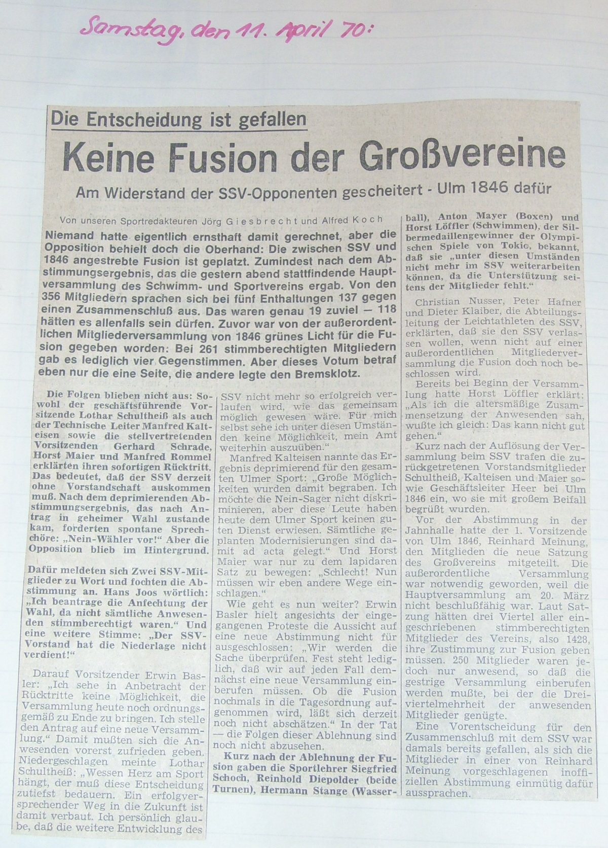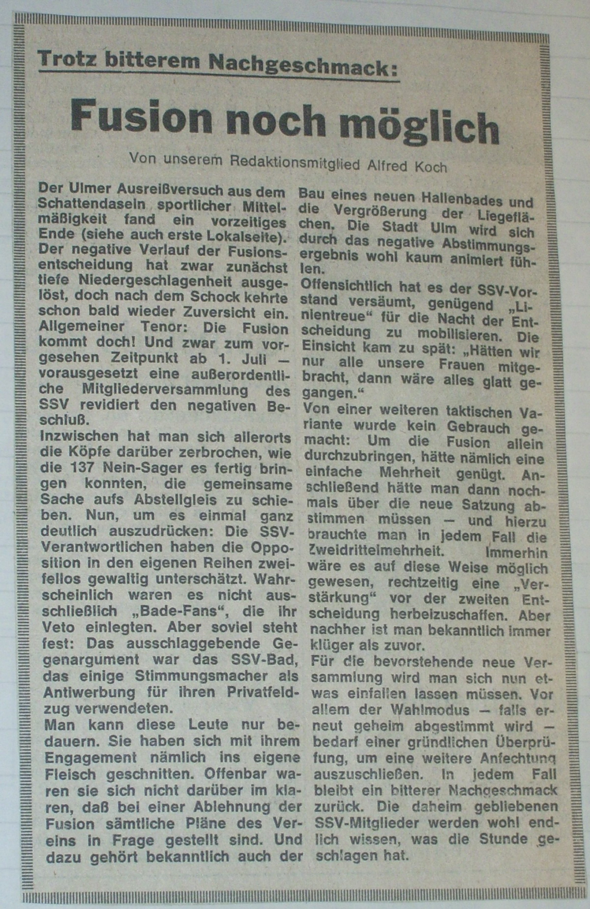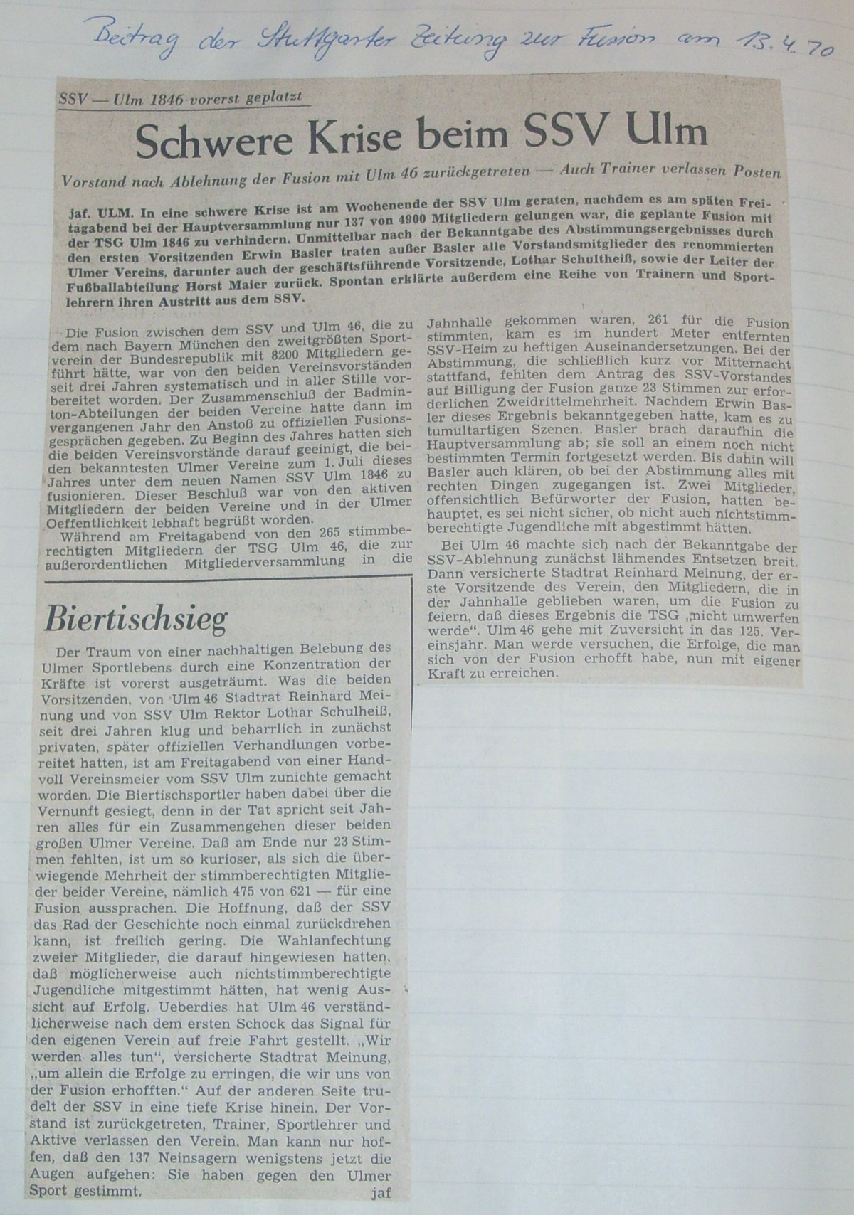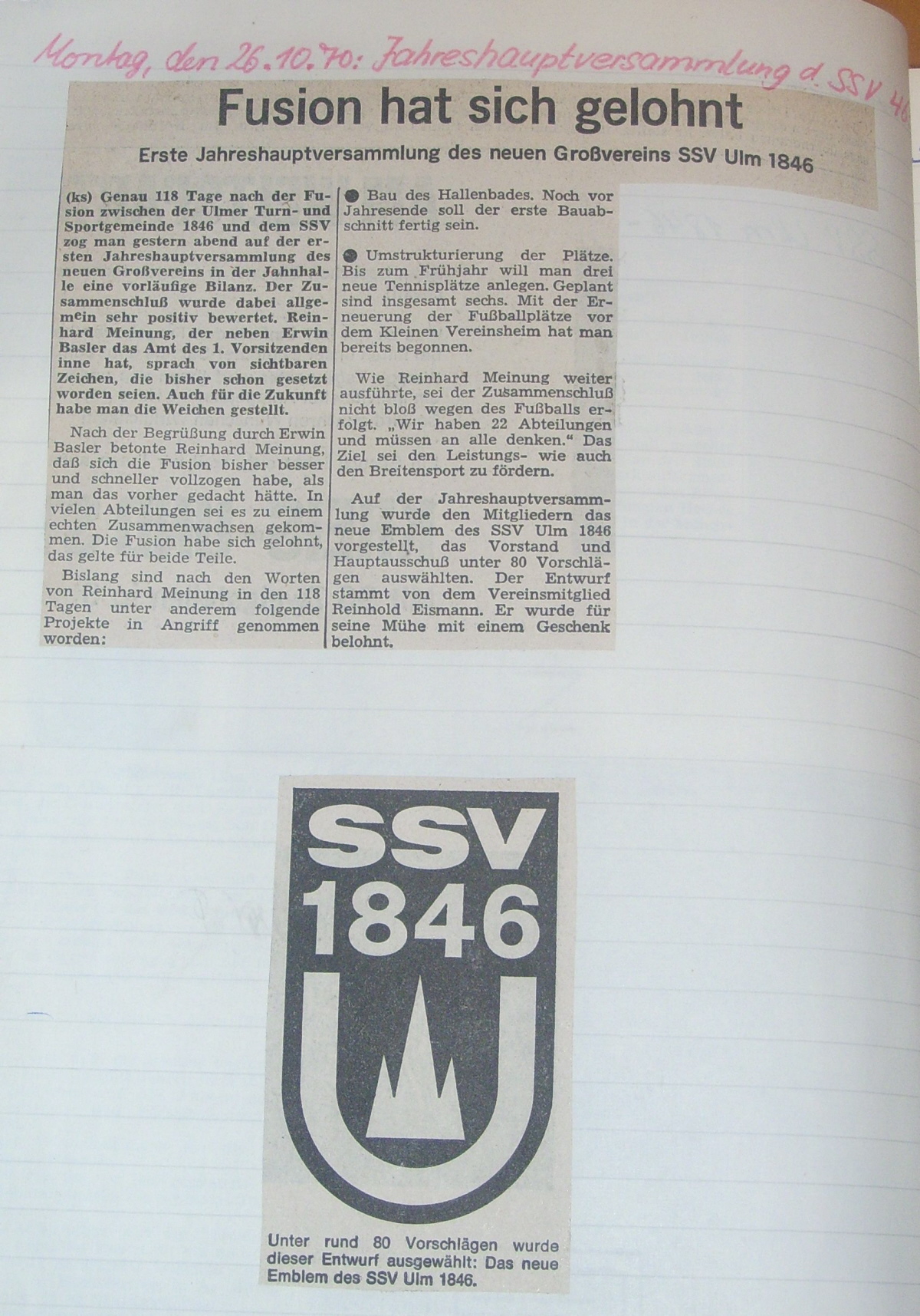 spannenden Zeit unseres daraus resultierenden Verein SSV Ulm 1846.